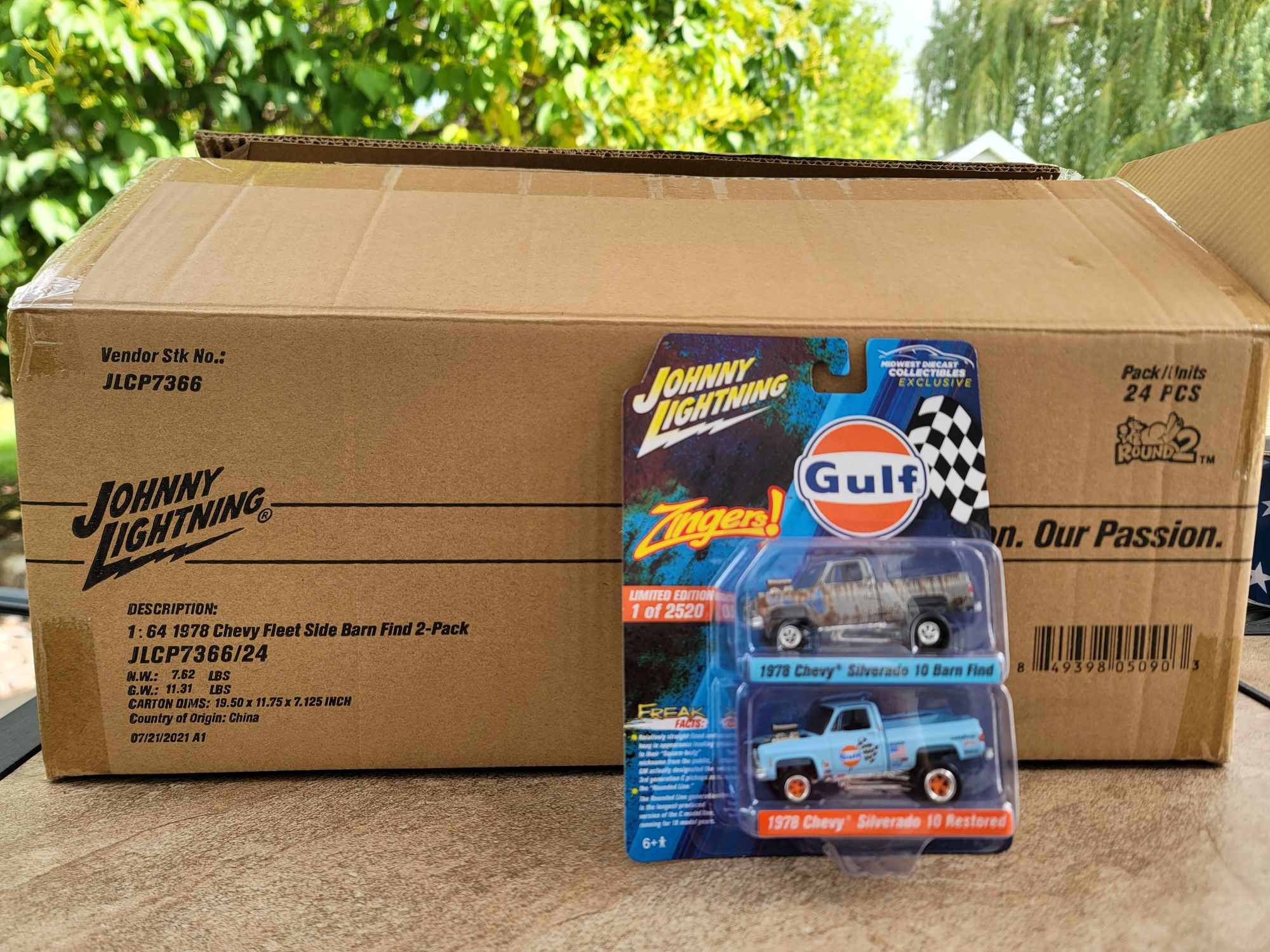 Sealed Case of 24 Zinger Gulf Squarebody 2 pack includes White Lightning Chase